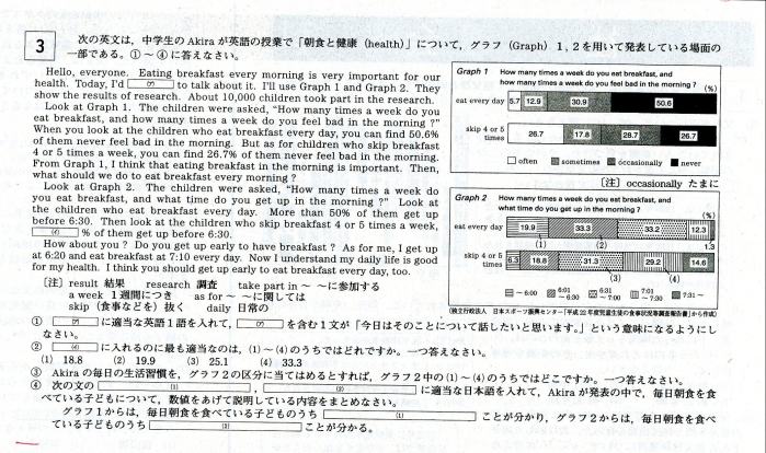 平成25年岡山県立高校入学試験 英語の問題より
