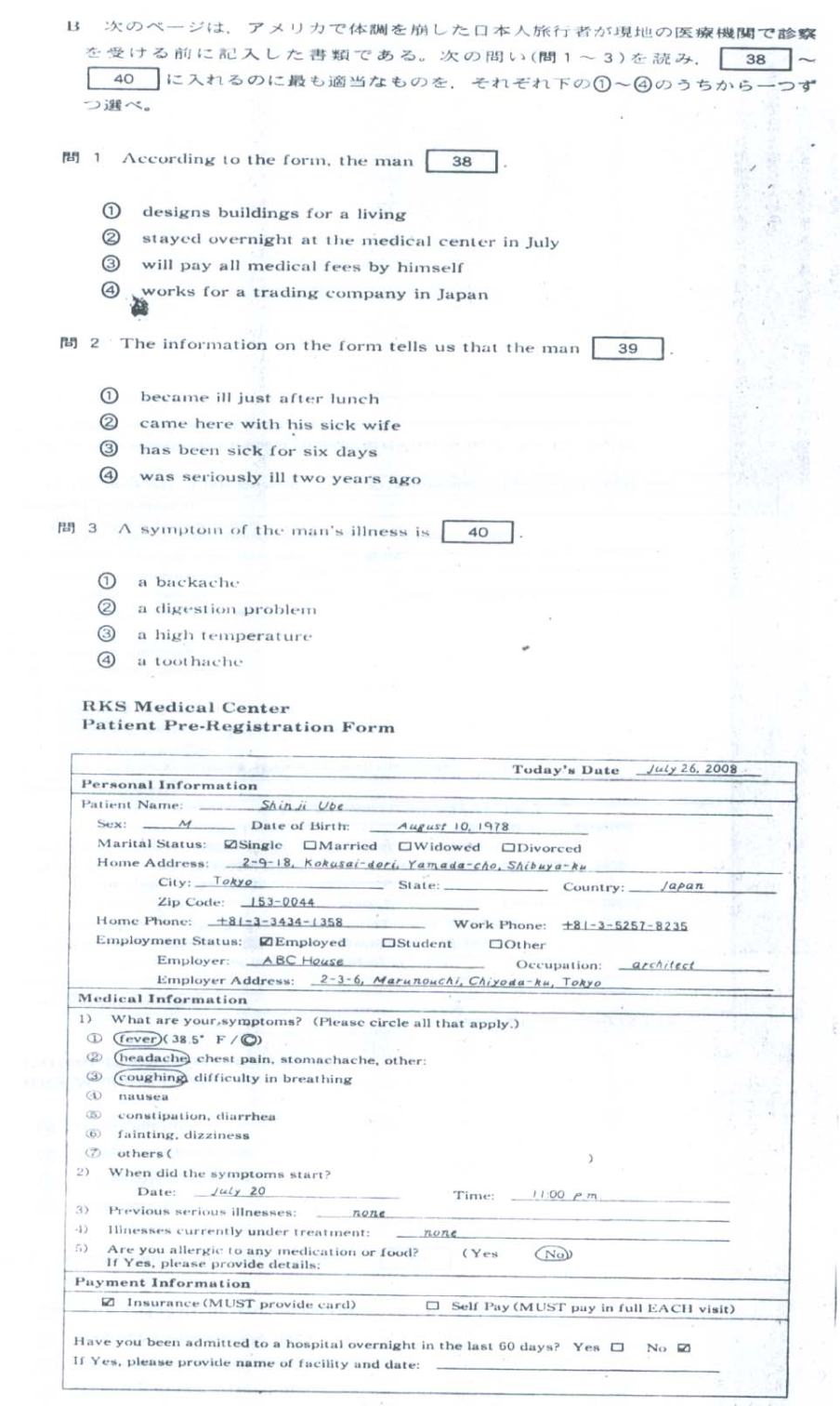 平成21年の大学入試センター試験 英語の問題に医療機関窓口での文章が出ています。